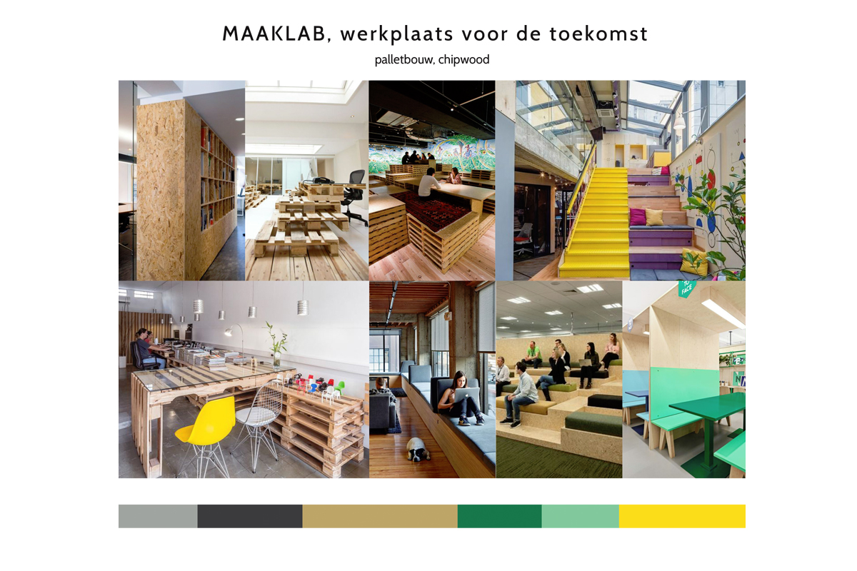 Bouwbedrijf TBI in Amersfoort introduceert een nieuwe afdeling; Maaklab. Hier kunnen jonge innovatieve start-ups aan de slag en gebruik maken van elkaars expertise. De nieuwe identiteit wordt ontwikkeld in samenwerking met ’t Idee. Een toegankelijke sfeer van houten pallets en losse, snel uit de handgeschilderde vormen zijn de basis van deze huisstijl. De visuele ikonen worden ingezet als taal op de wanden in de ruimte maar ook in presentaties in powerpoint of jaarverslagen.