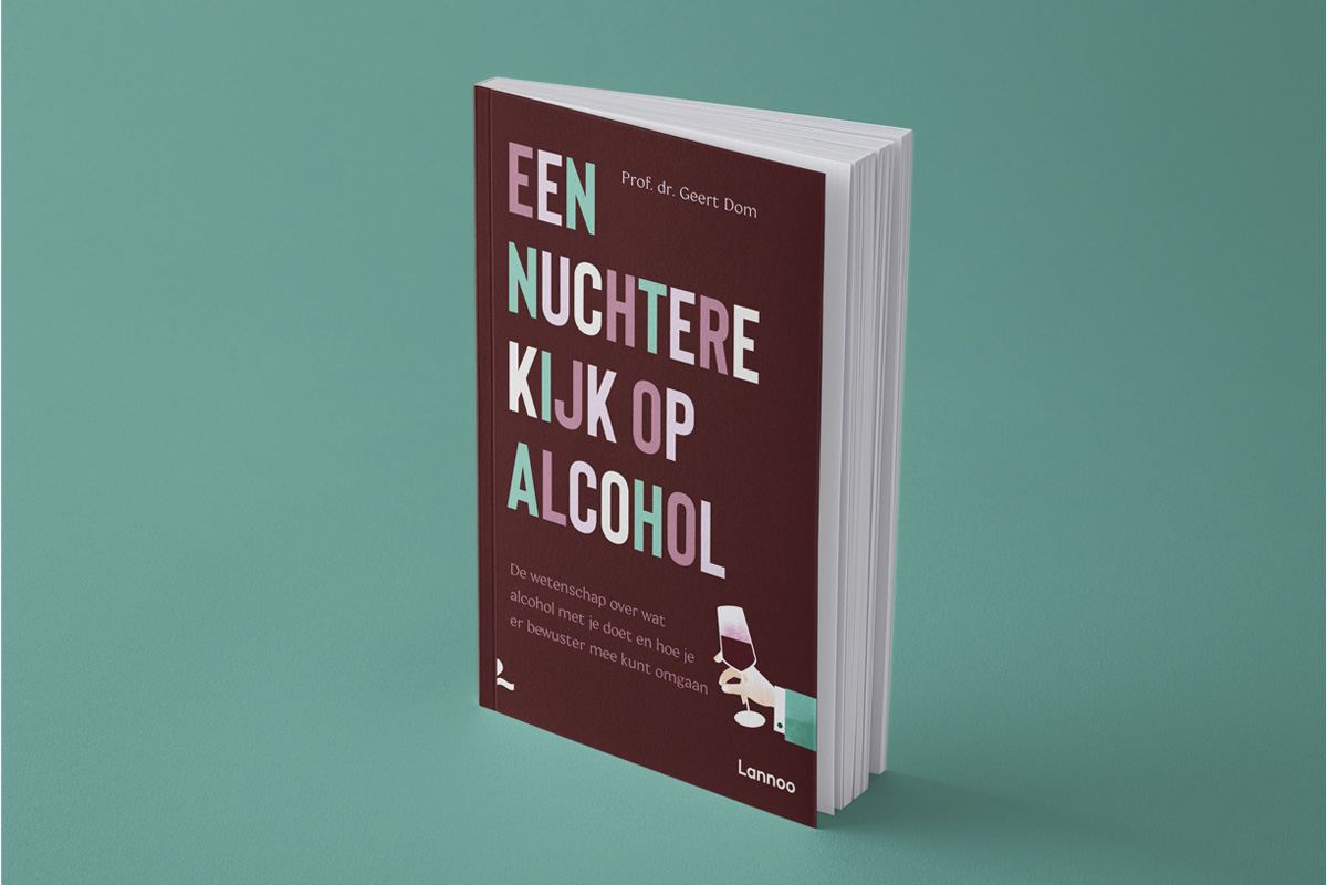 Een nuchtere kijk op alcohol geschreven door Prof dr. Geert Dom. Op het wijnrode omslag in een nuchter lettertype krijgt het boek zowel een wetenschappelijk als toegankelijke uitstraling. De kleine illustratie maakt het compleet.